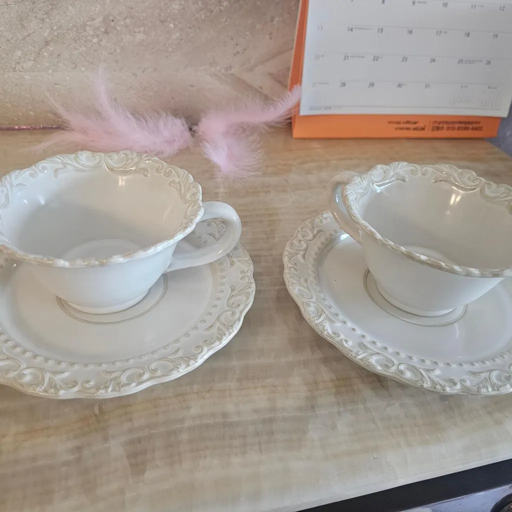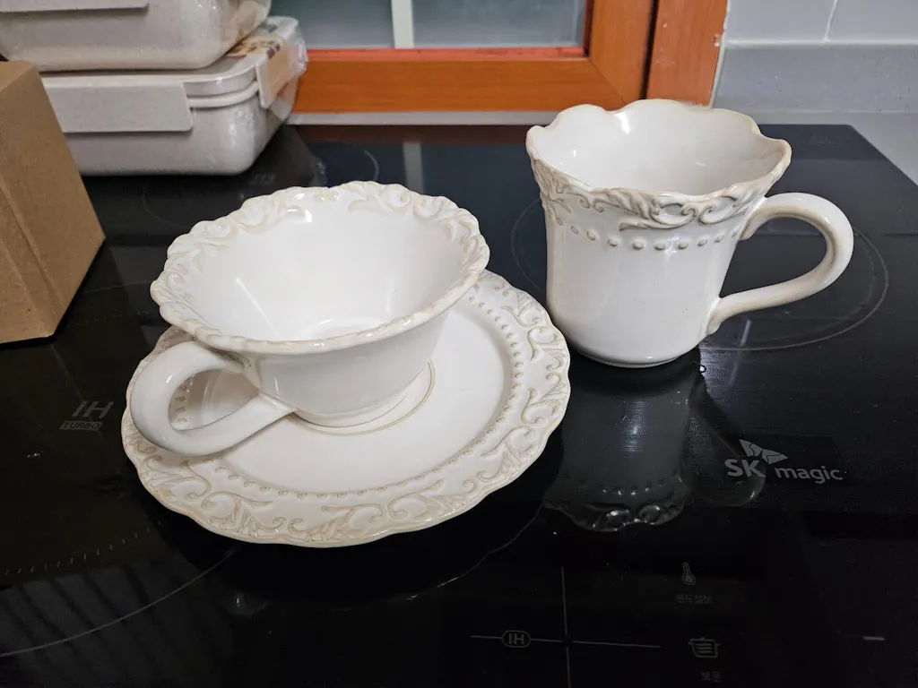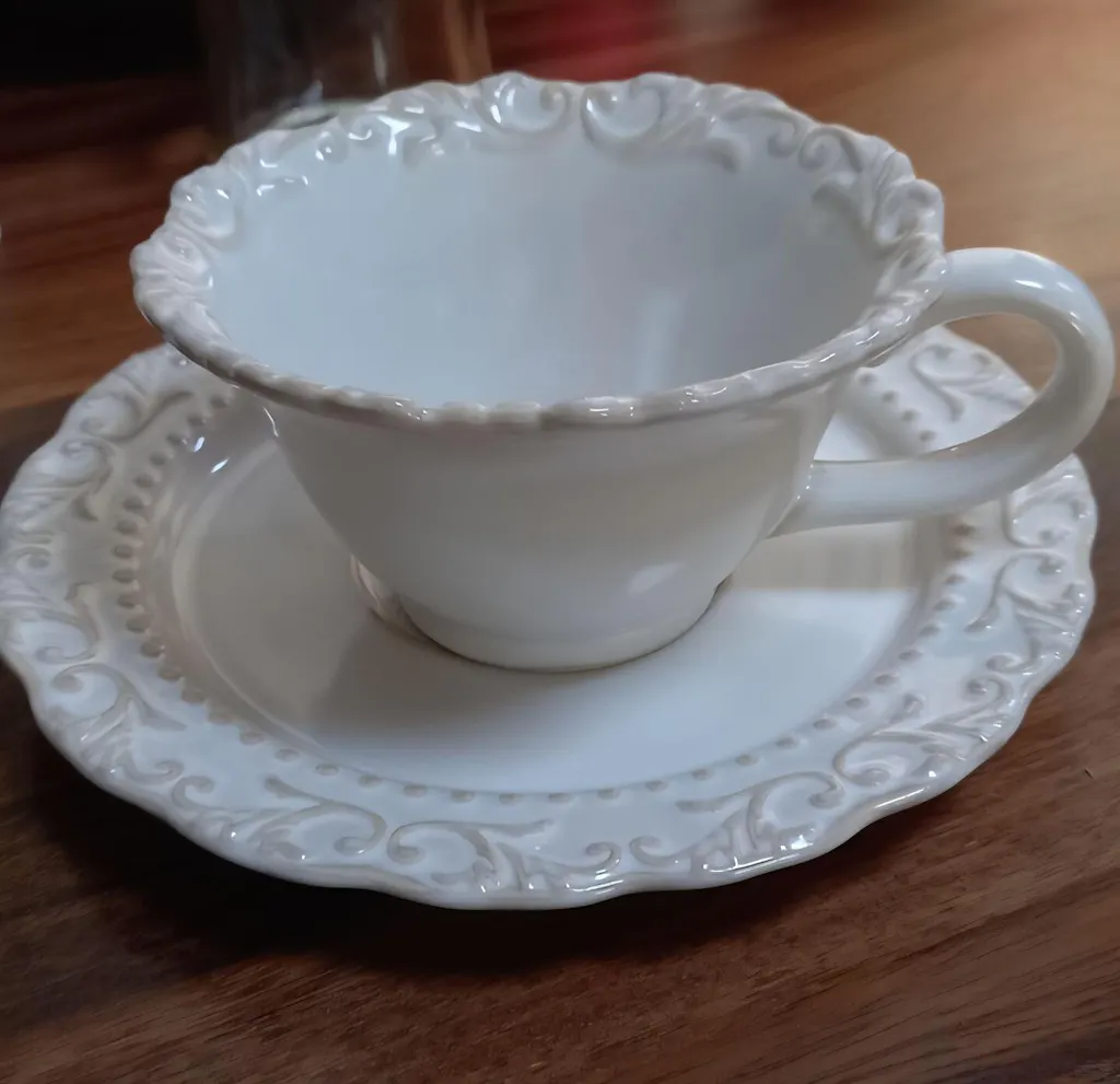 Inspired by 17th-century European Baroque design, this ceramic coffee cup and saucer set brings a timeless, vintage touch to your table. The soft cream base and delicate embossed details add an elegant accent that elevates any coffee moment—from quiet mornings to special gatherings.