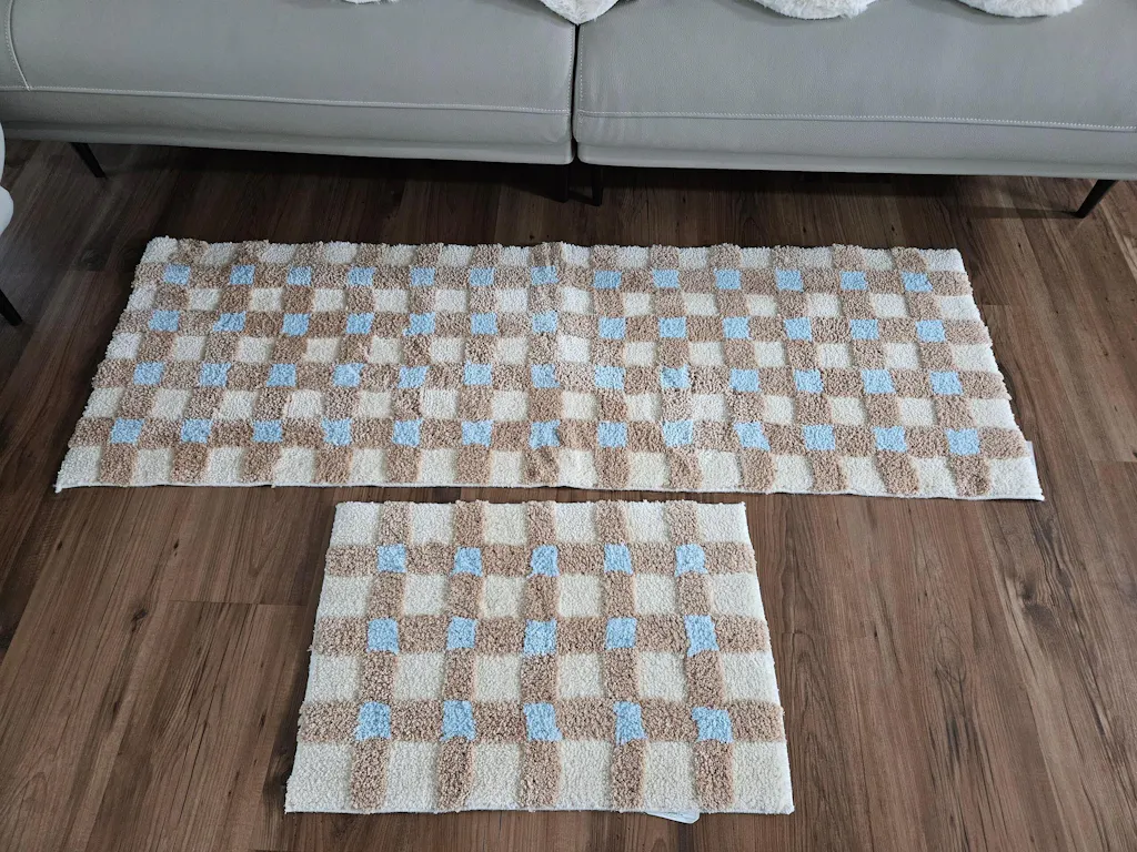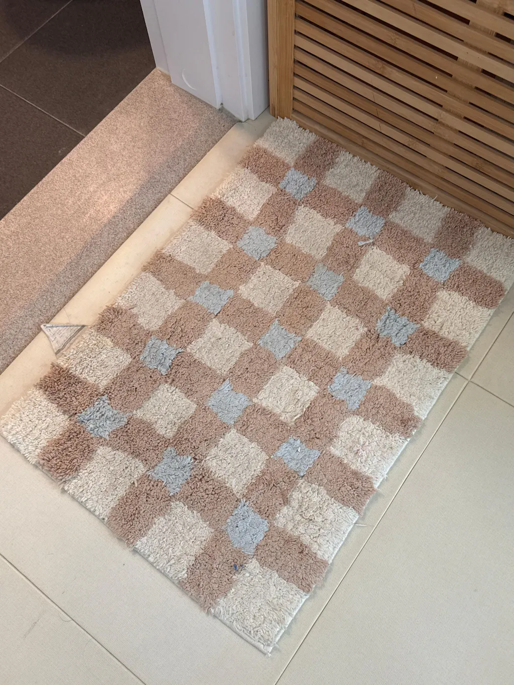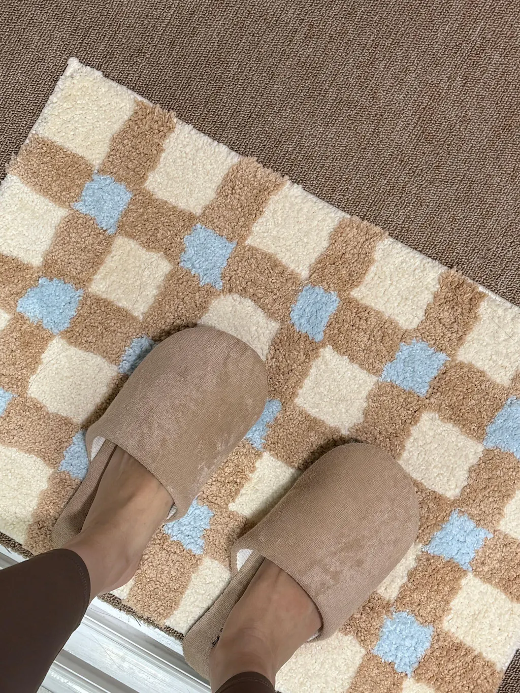 The Candy Check Tufted Rug combines a classic check pattern with soft, candy-like color accents, letting you create anything from calm coziness to light, playful energy—while keeping your space clean and minimal. By varying the pile height between the pattern and base color, it adds subtle dimension, and the soft tufted texture feels comfortable for everyday use. Use it as a bath mat for cozy step-out moments or as a compact kitchen mat to warm up hard floors.