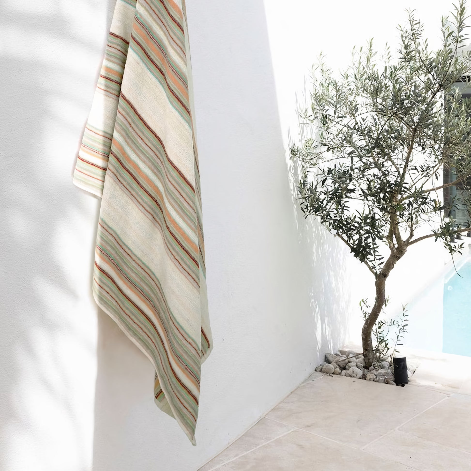Made with compact combed yarn, it offers a soft hand-feel with fast absorption that performs well after every use. The bold stripe pattern brings a fresh, coastal look that stands out at the beach, pool, or gym, while durable color development helps keep the towel looking bright and clean over time.