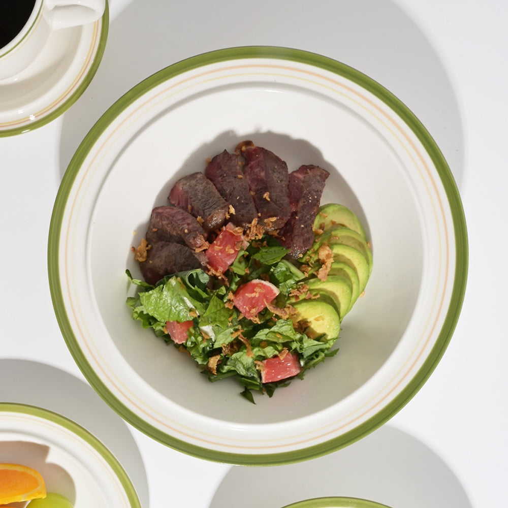 This 9" pasta bowl is made from high-quality porcelain with a gently curved shape and a subtle maple-leaf-inspired rim detail. Light in hand but solid in build, it holds up to daily use while still looking good on the table. Seven color options make it easy to mix and match or build a cohesive set over time. Microwave and dishwasher safe.