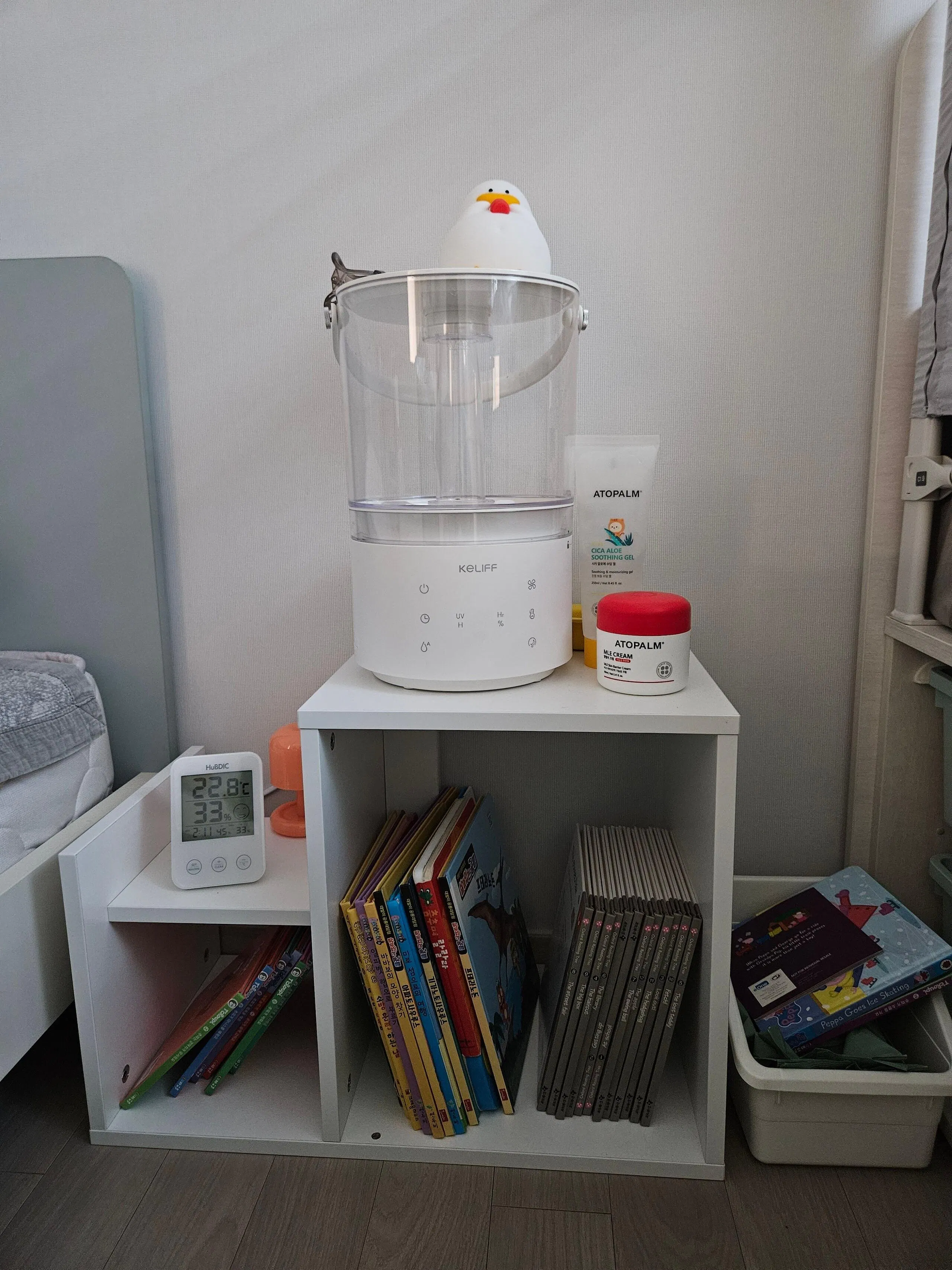 Just right. I was looking for a small side table for my kids' room that could hold books and a humidifier, and this worked perfectly. The white color is really nice, it holds a lot of books, and having space on top is super convenient.