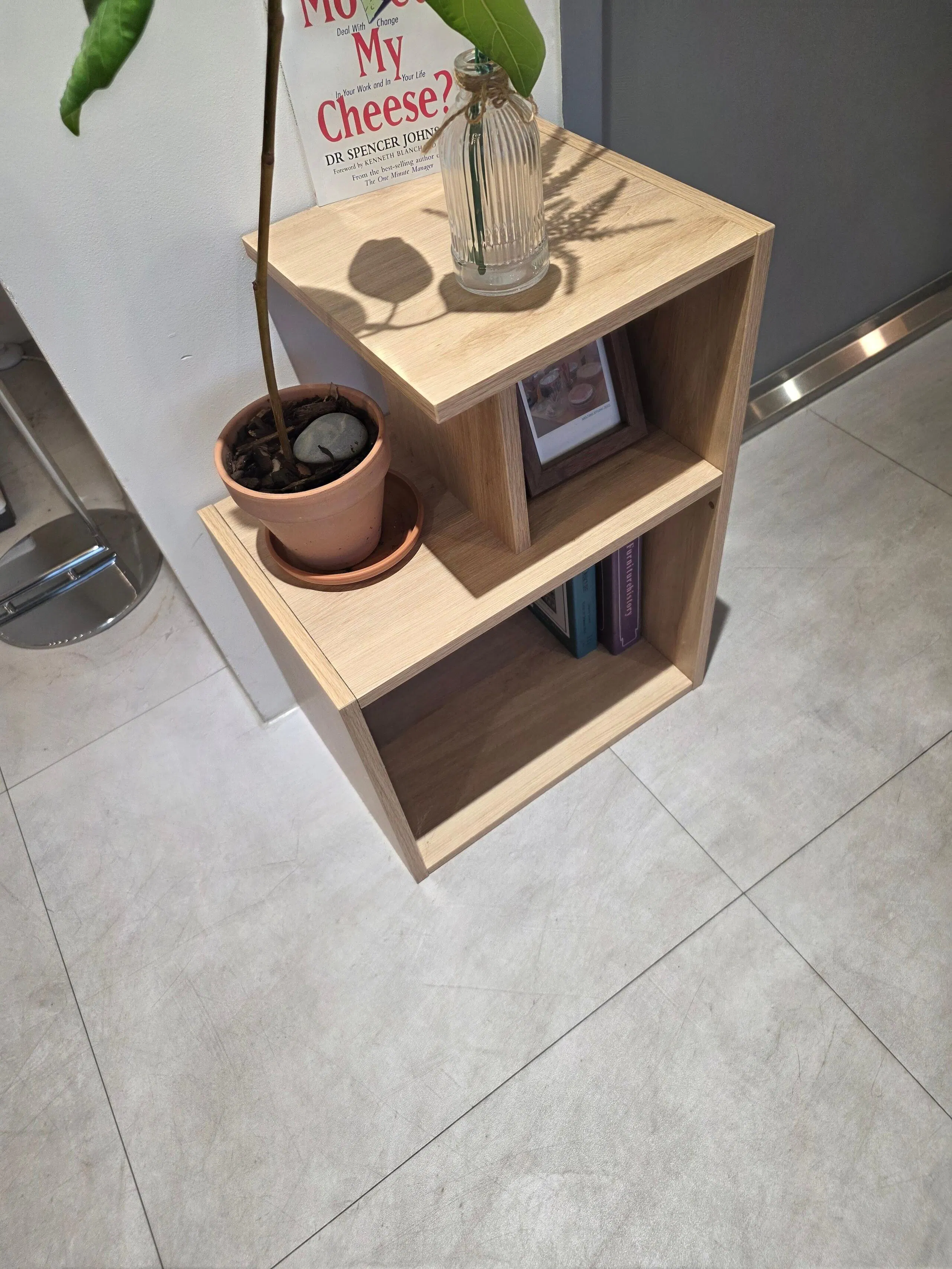 This compact side table makes smart use of limited space with an open lower compartment and an offset top shelf that provide built-in storage without visual bulk. Designed to be used either upright or laid on its side, it allows you to style and position it freely based on your needs and preferences. Available in two layouts—A Type and B Type—so you can choose the configuration that works best for your space.