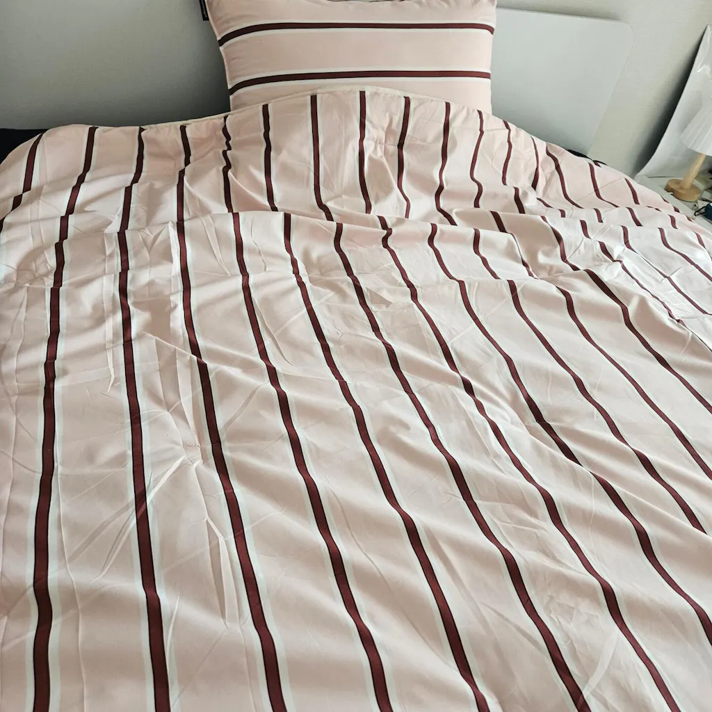 This striped all-season comforter set is designed to bring a soft, relaxed look to everyday bedrooms. The lightweight comforter provides cozy warmth without feeling heavy, making it suitable for use throughout the year. A subtle stripe pattern adds texture while maintaining a clean, modern aesthetic.