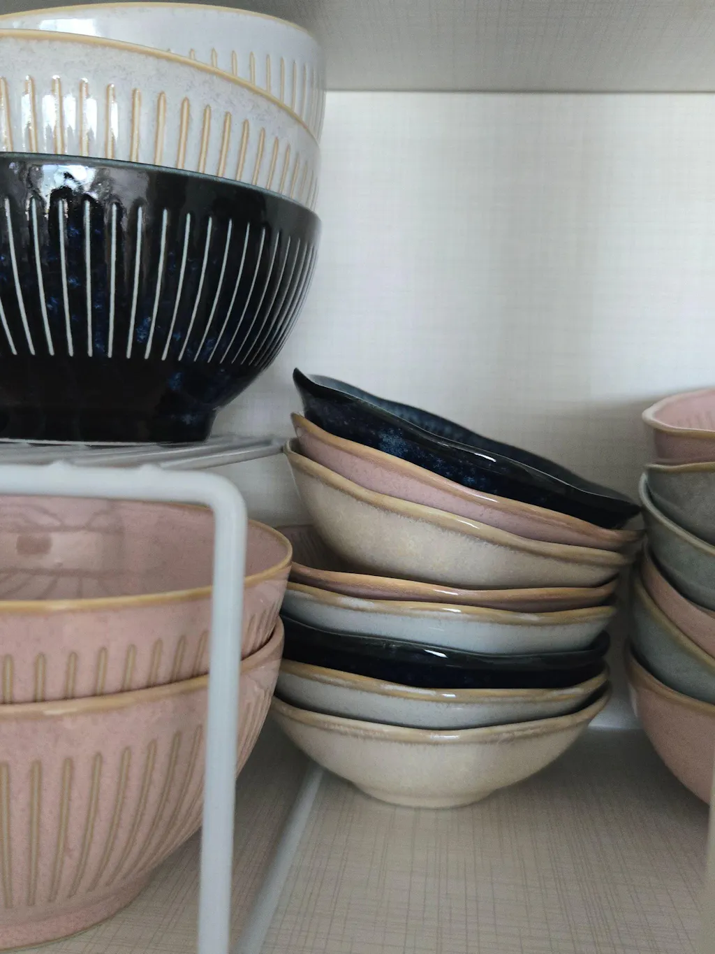 The bowls are so pretty that I ended up buying several styles to refresh my table! It really lifted my mood. The rice bowl edges can chip if you're not careful.