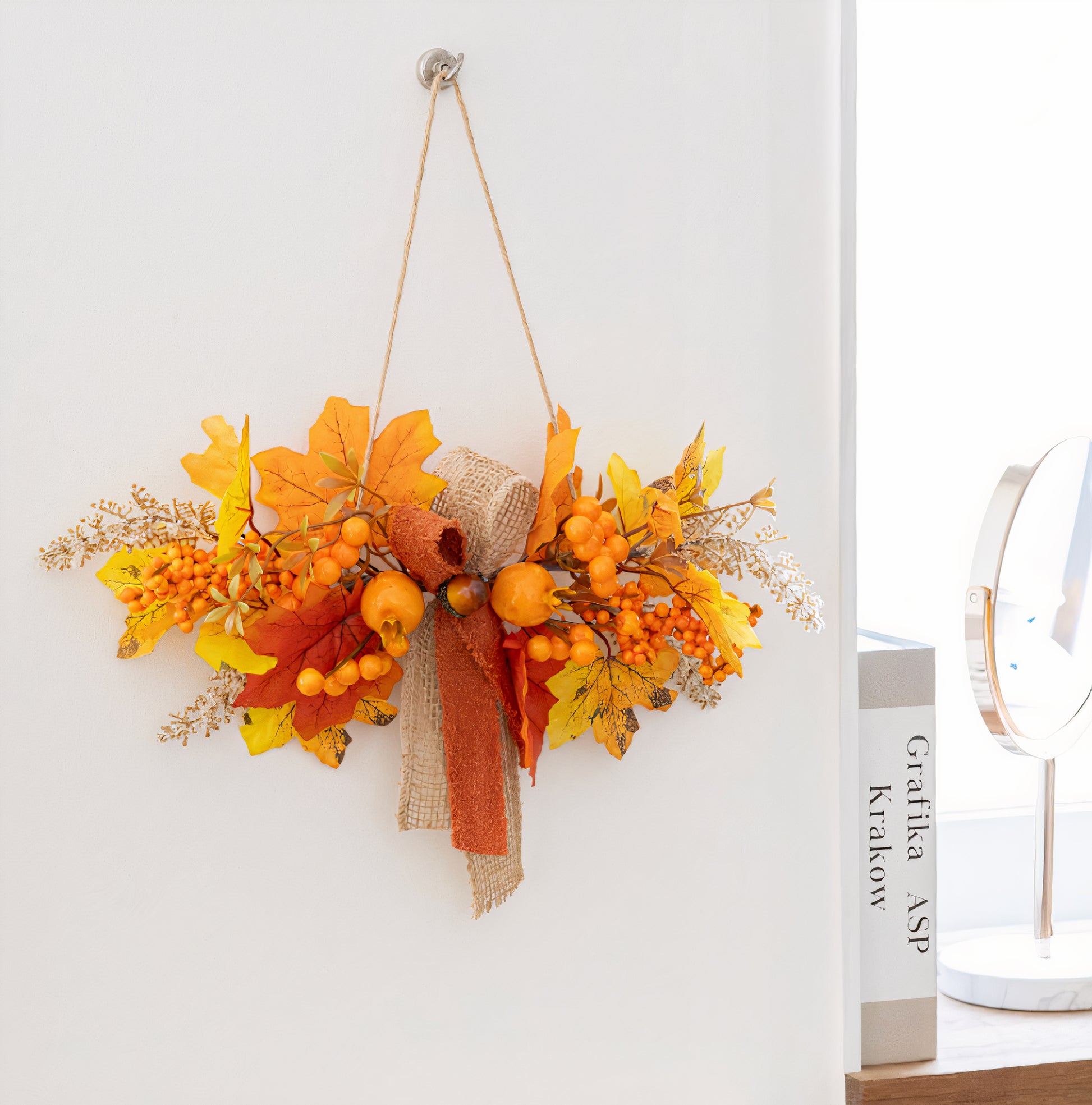 Bring the warmth of autumn indoors with this handcrafted garland featuring acorns, maple leaves, and berries in rich fall colors. Each piece is handmade by a florist, ensuring thoughtful detail and natural charm. Perfect for adding a cozy, seasonal accent to your wall, entryway, or table decor.