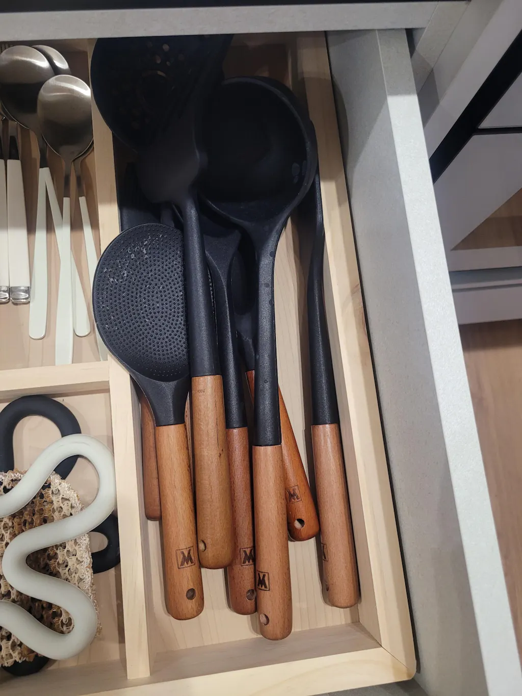 Everyday home cooking, nonstick cookware users, small kitchens, or anyone looking for a clean, matching utensil set