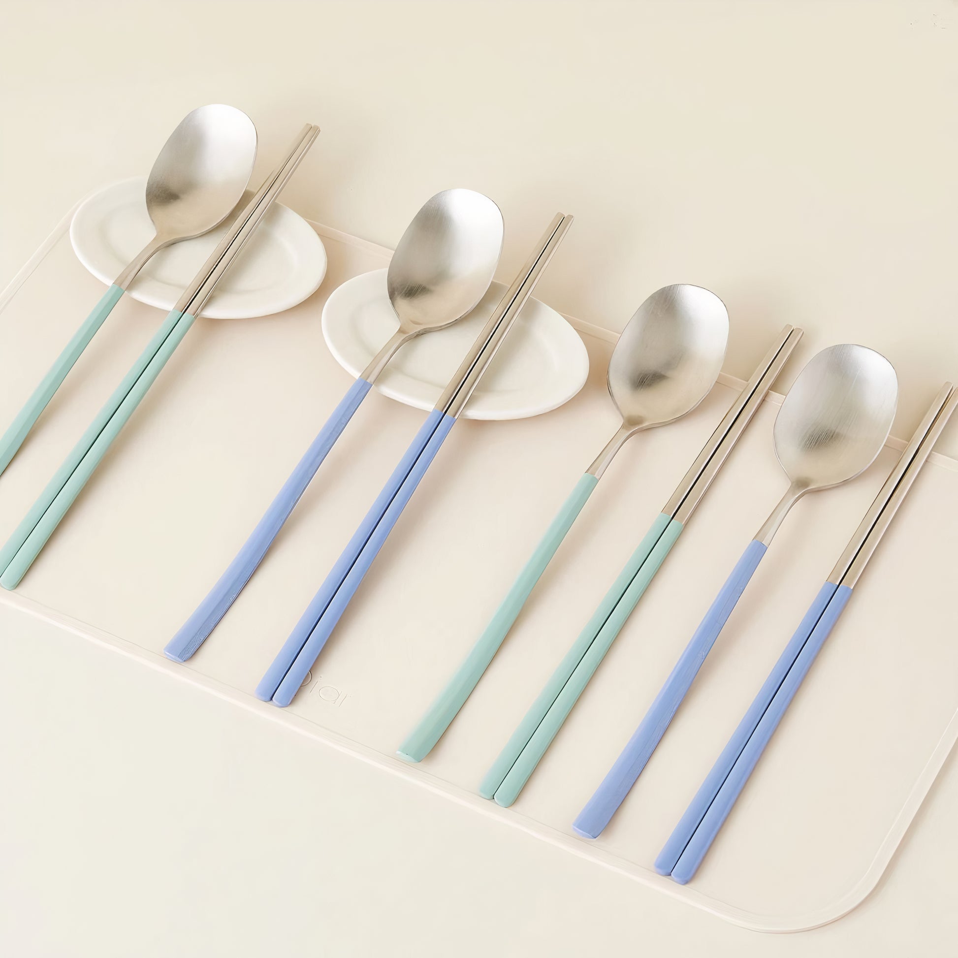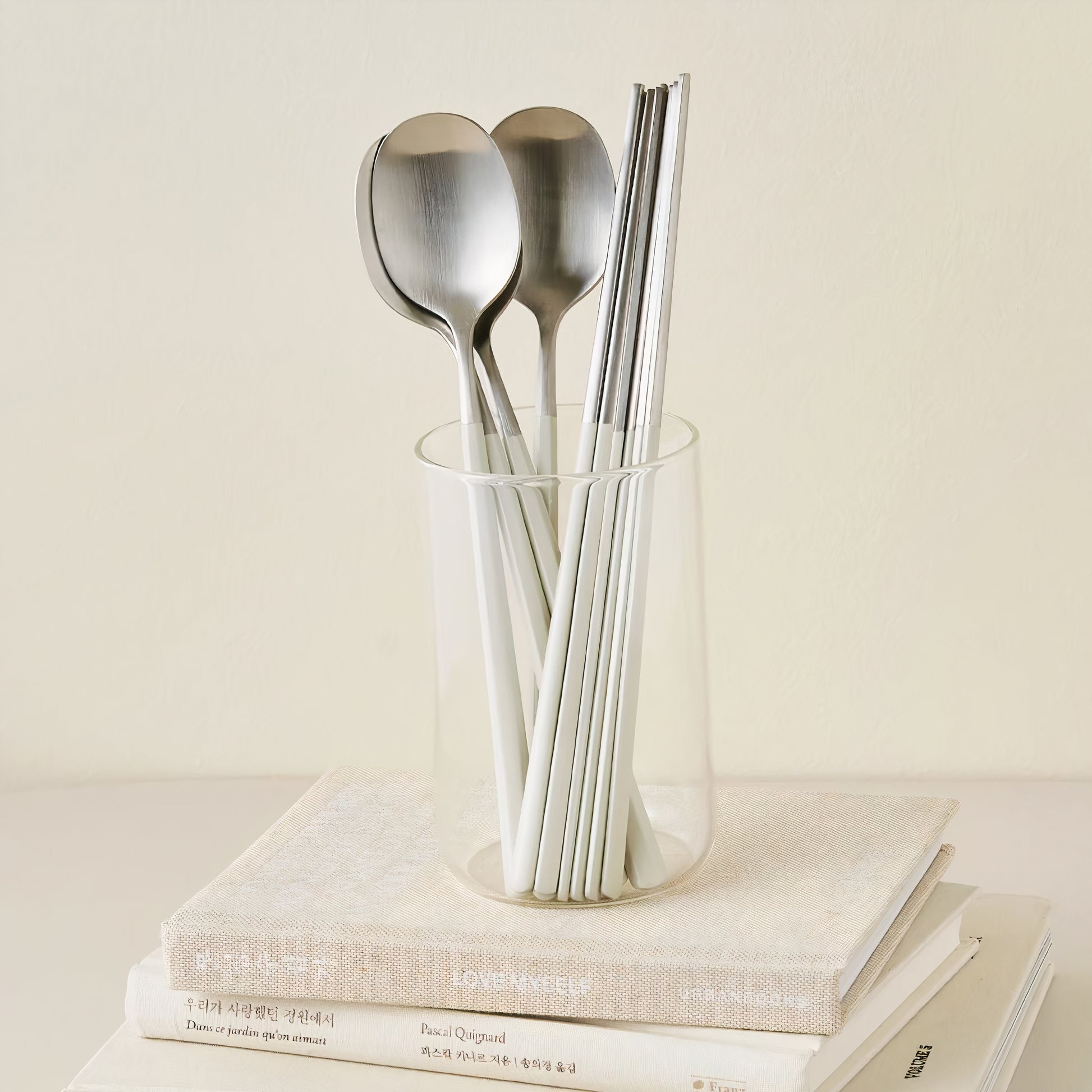 This four-person flatware set delivers both design and safety in one clean, modern package, with its glitter pearl powder finish. Each utensil features a seamless one-piece construction, keeping things hygienic with no joints where residue can collect. The smooth, curved handle feels light and comfortable in hand, while the high-temperature fired coating maintains its color without peeling or fading. Safe, practical, and easy to clean, it’s a simple upgrade for any everyday kitchen.