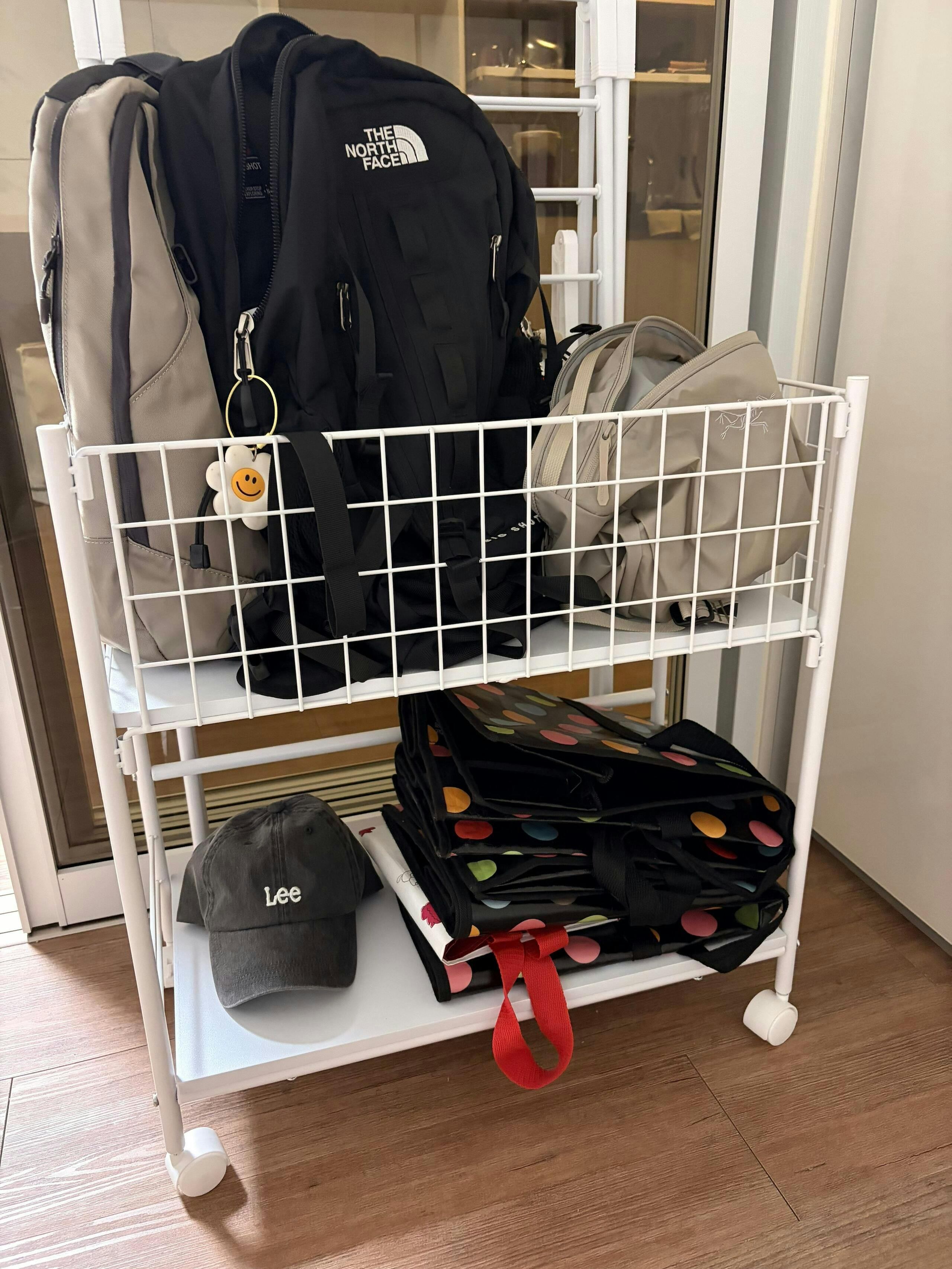 Looks super clean and nice! I bought this mainly to organize bags, and it looks nice without hurting the overall d?cor. Assembly itself was easy, but lining up some of the parts took a bit of effort. It looks even better now that it's filled with bags.