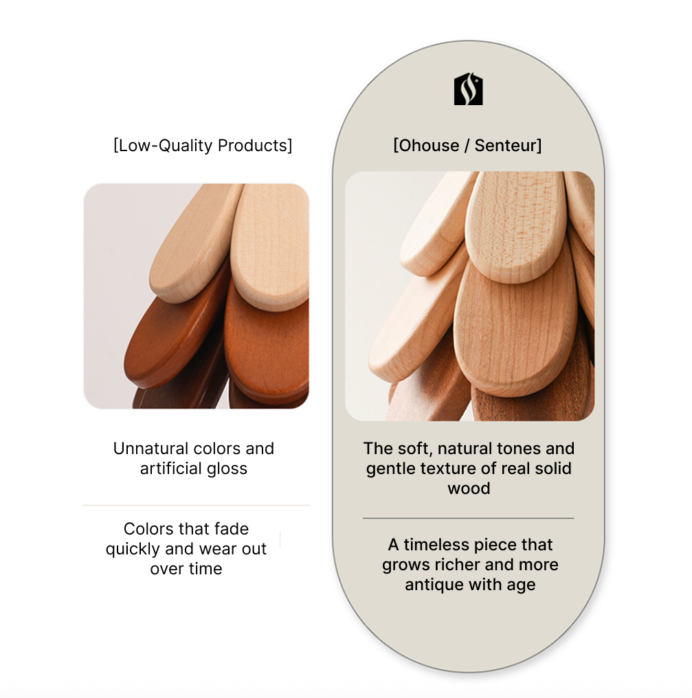 - Handcrafted Quality: Each piece highlights the organic texture and natural gloss of real wood without artificial coating.