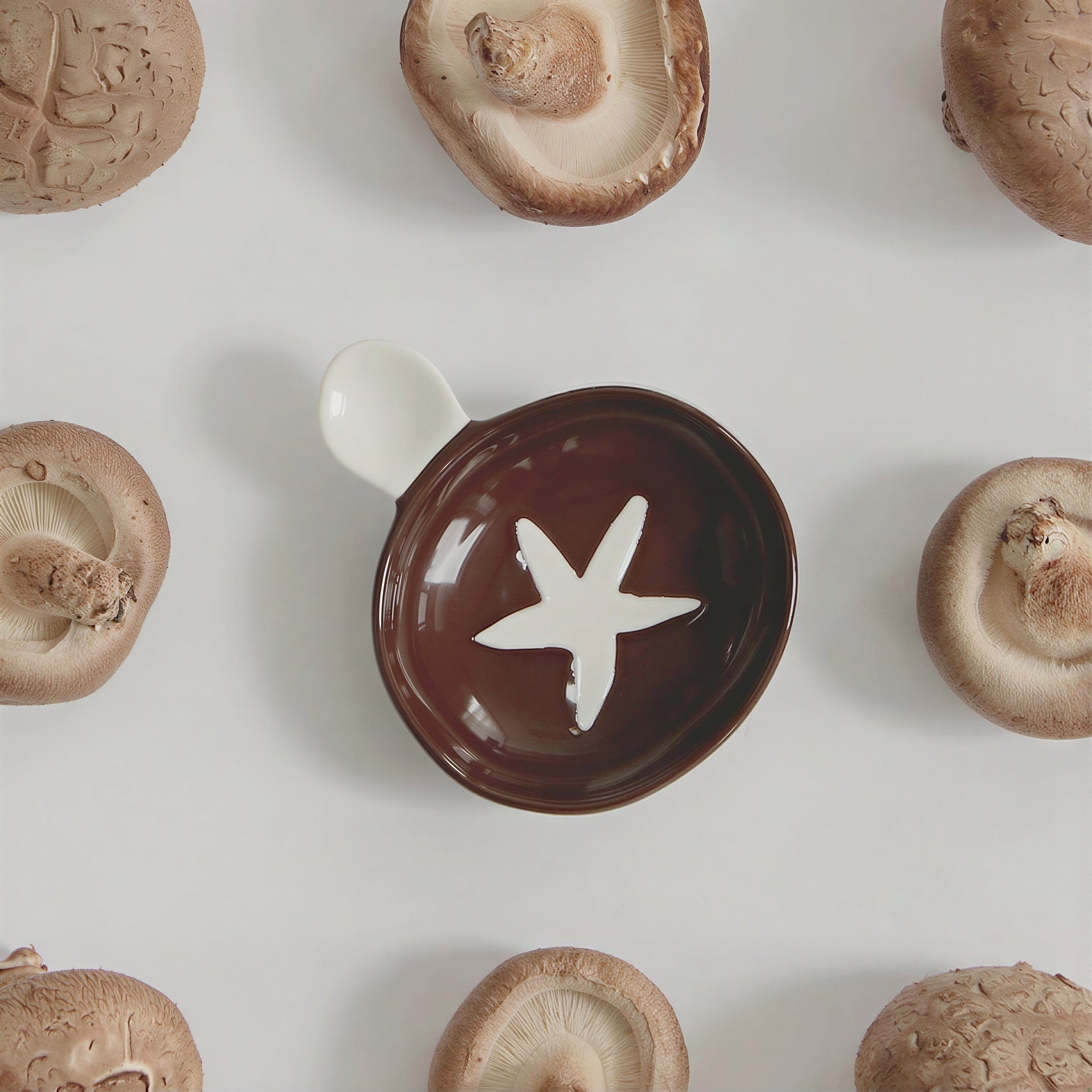 Mushroom Plate: 3.5" W × 4.3" D × 1.0" H (9 × 11 × 2.5 cm) / 0.19 lb (85 g)