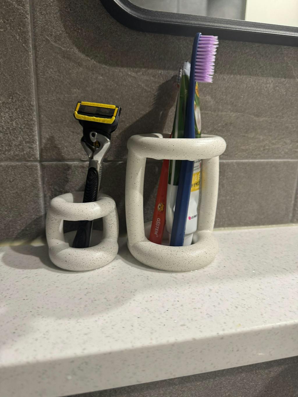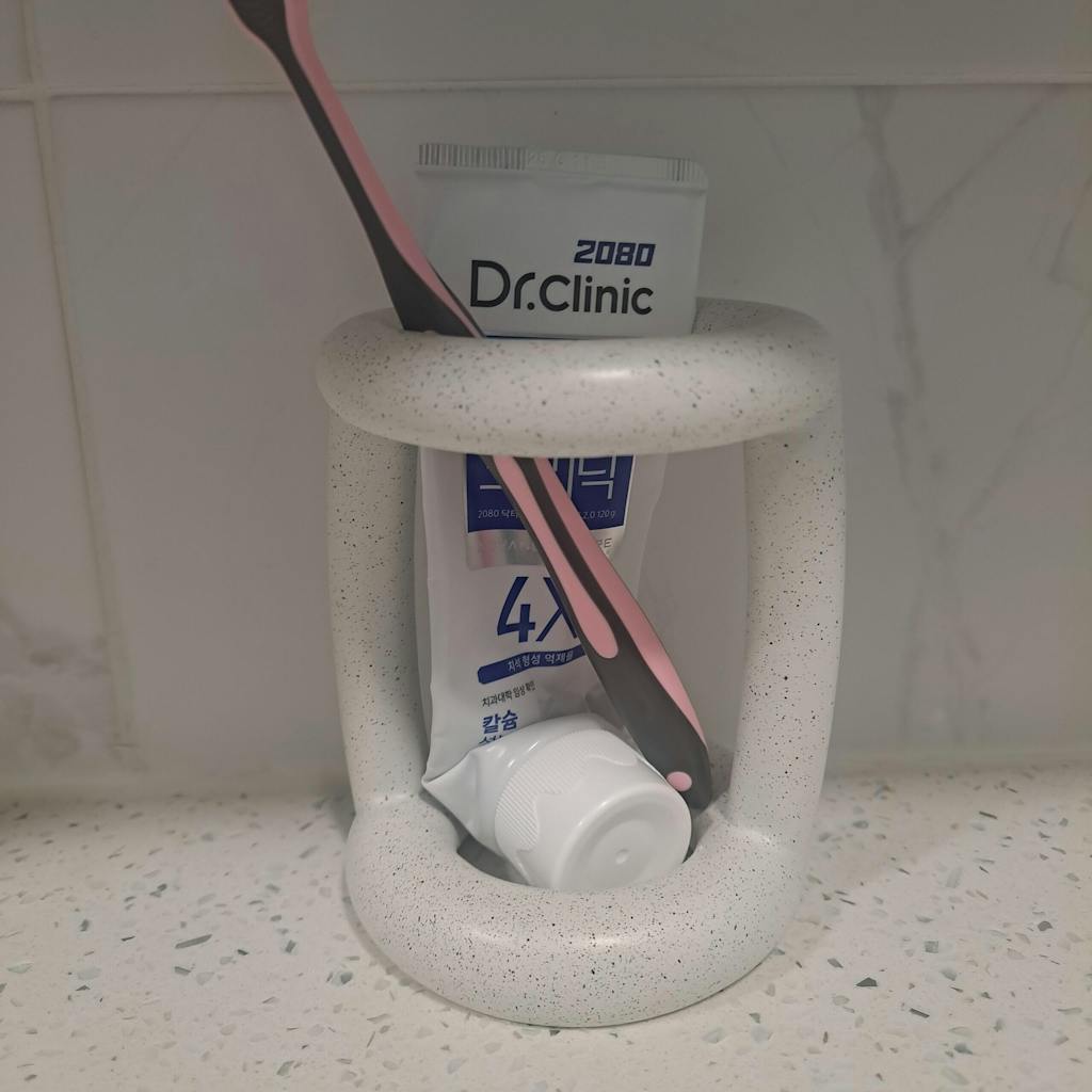 I was looking for a toothbrush holder that felt simple but still cute, and this one immediately stood out. The open bottom is actually a plus for me since it seems like it'll be easier to keep clean. It also matches my bathroom style really well.