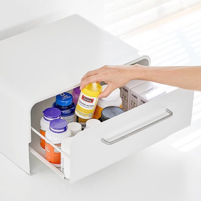 - Dual Storage Zones — Use the top surface for appliances and the interior drawer for pantry items, supplements, or accessories.