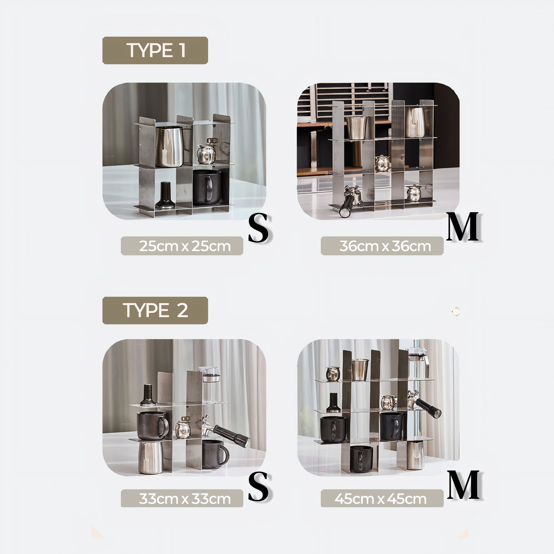 This stainless steel grid shelf is a compact, modern storage and display solution for kitchens, coffee stations, and small living spaces. Made from high-quality stainless steel, it offers a clean, refined look while staying hygienic and easy to maintain. The open grid design keeps items visible and accessible without adding visual bulk, making it ideal for everyday organization.