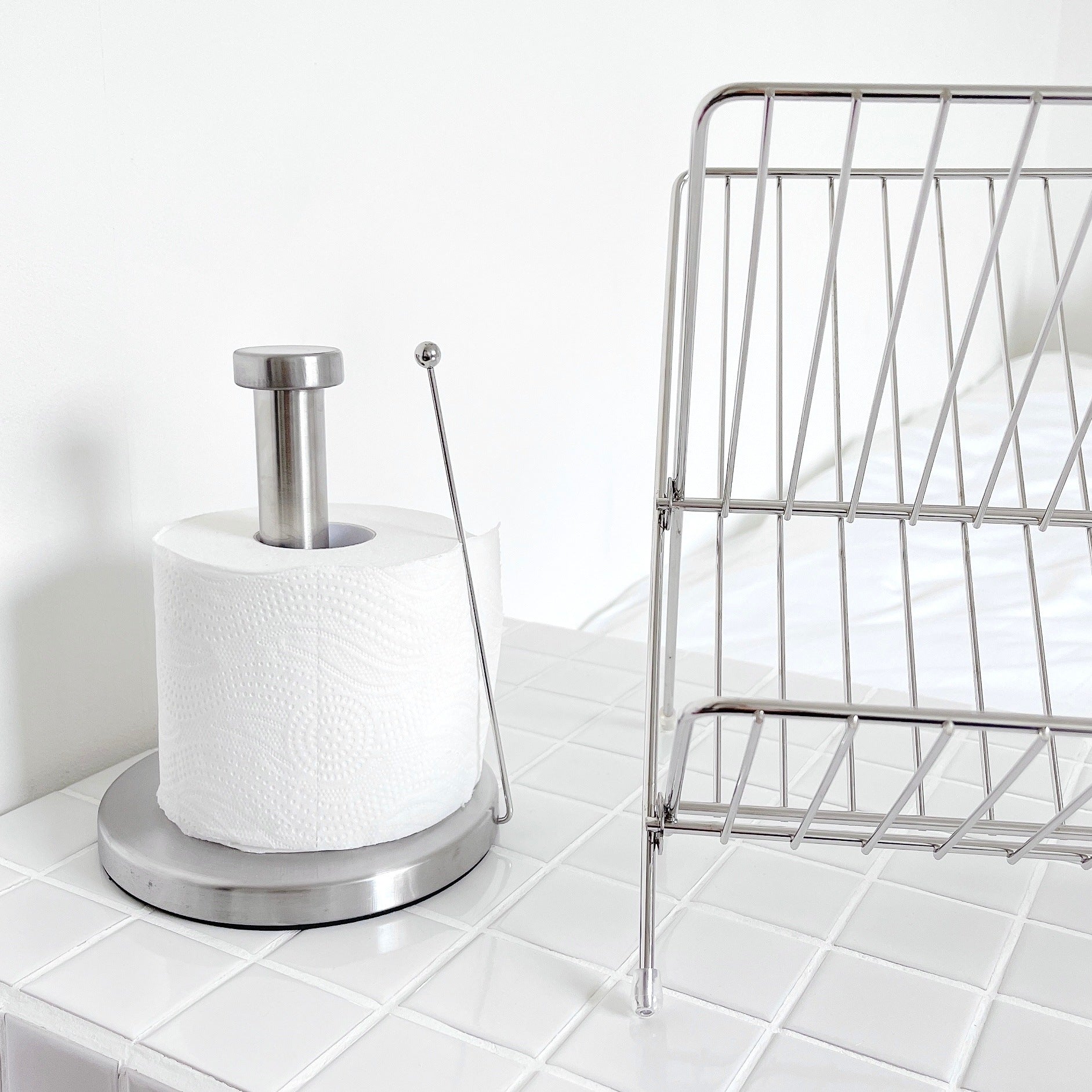 Kitchens, bathrooms, home offices, studio apartments, or any space that needs a simple, freestanding paper towel solution without wall mounting