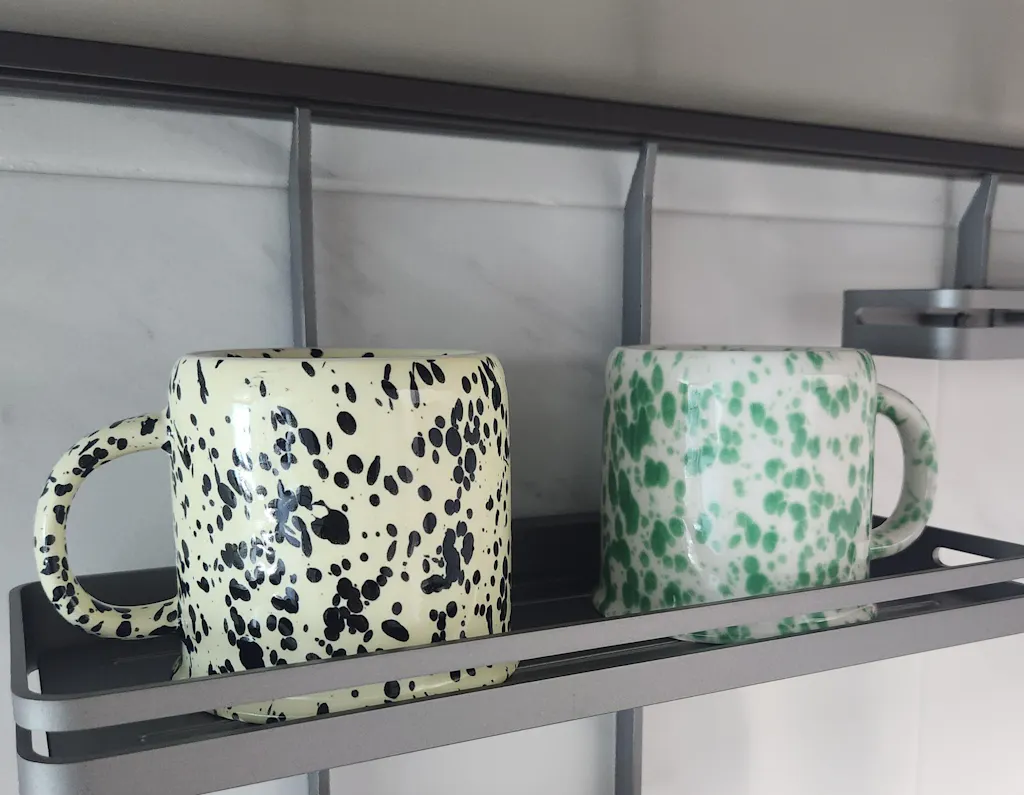 An expressive everyday piece with an artistic edge. The Studio Splash Ceramic Mug features a dynamic, paint-like pattern that brings movement and character to your table—no two pieces exactly alike. Whether styled on a shelf or used for your morning coffee, it adds a subtle yet distinctive statement to any space.