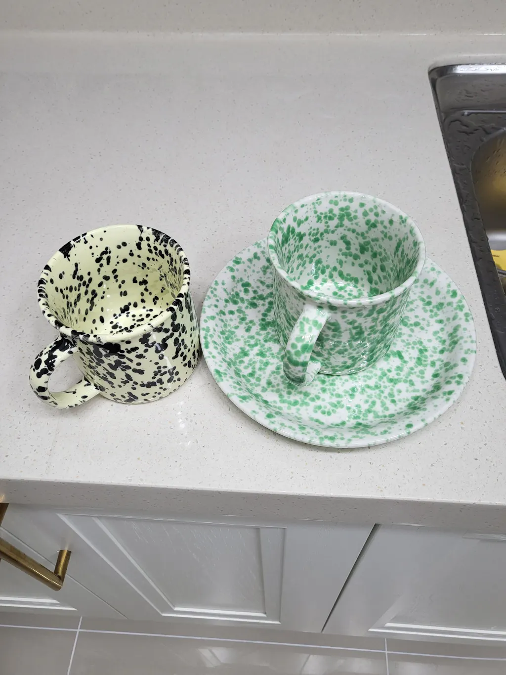The speckled design is really charming and looks nice in person. The size is practical and versatile enough for everyday use.
