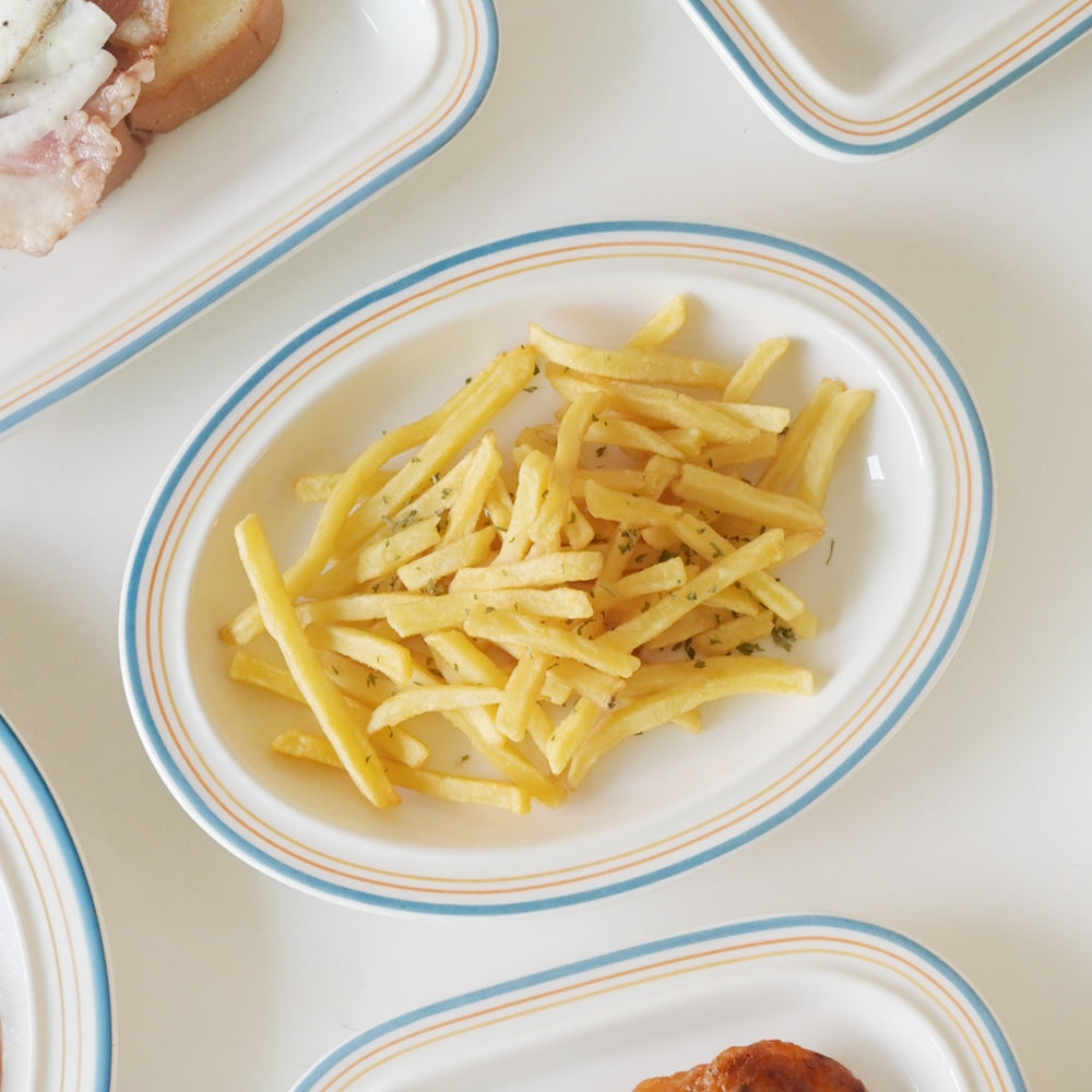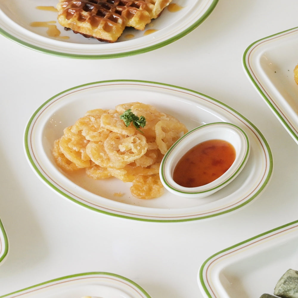 The oval design has its own special charm. The plate is solid and simple in style — perfect for serving small side dishes. I plan to buy a slightly larger oval one next time for more versatility.