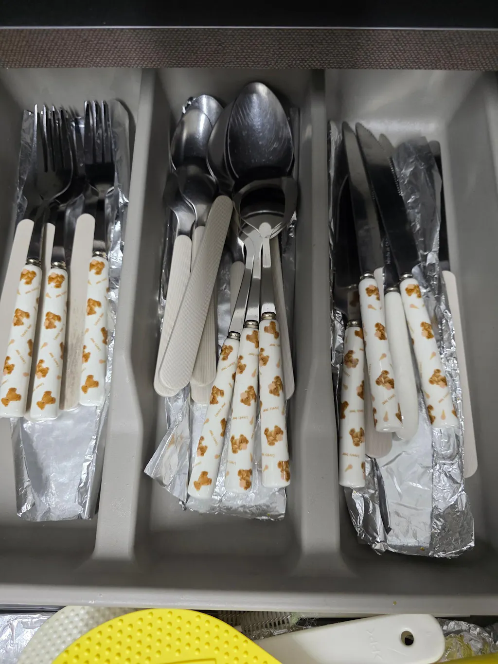 This bear cutlery set is so cute. The price for the set is great too. The knife isn't the sharpest, but honestly the design makes up for it. I kind of wish I had bought another set.