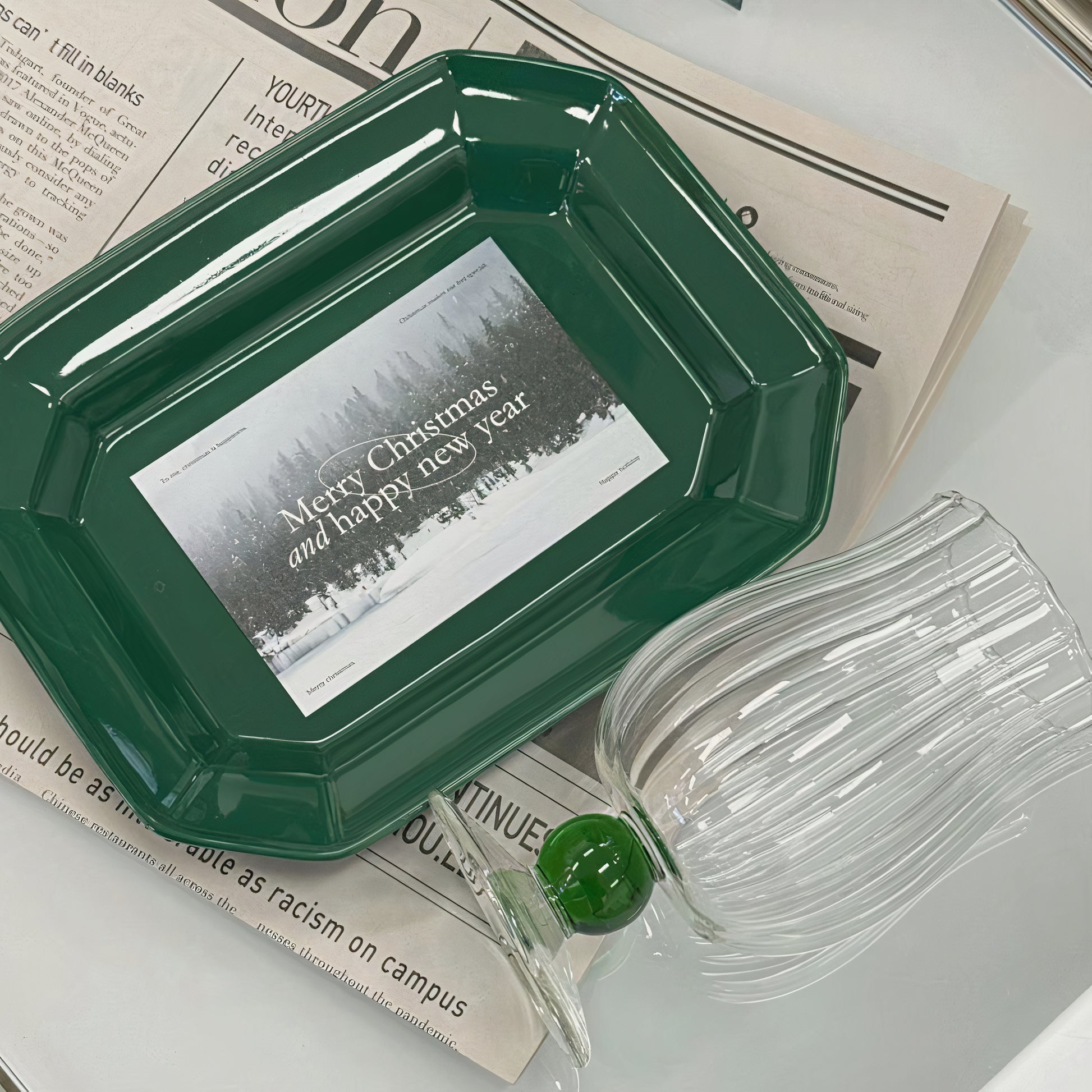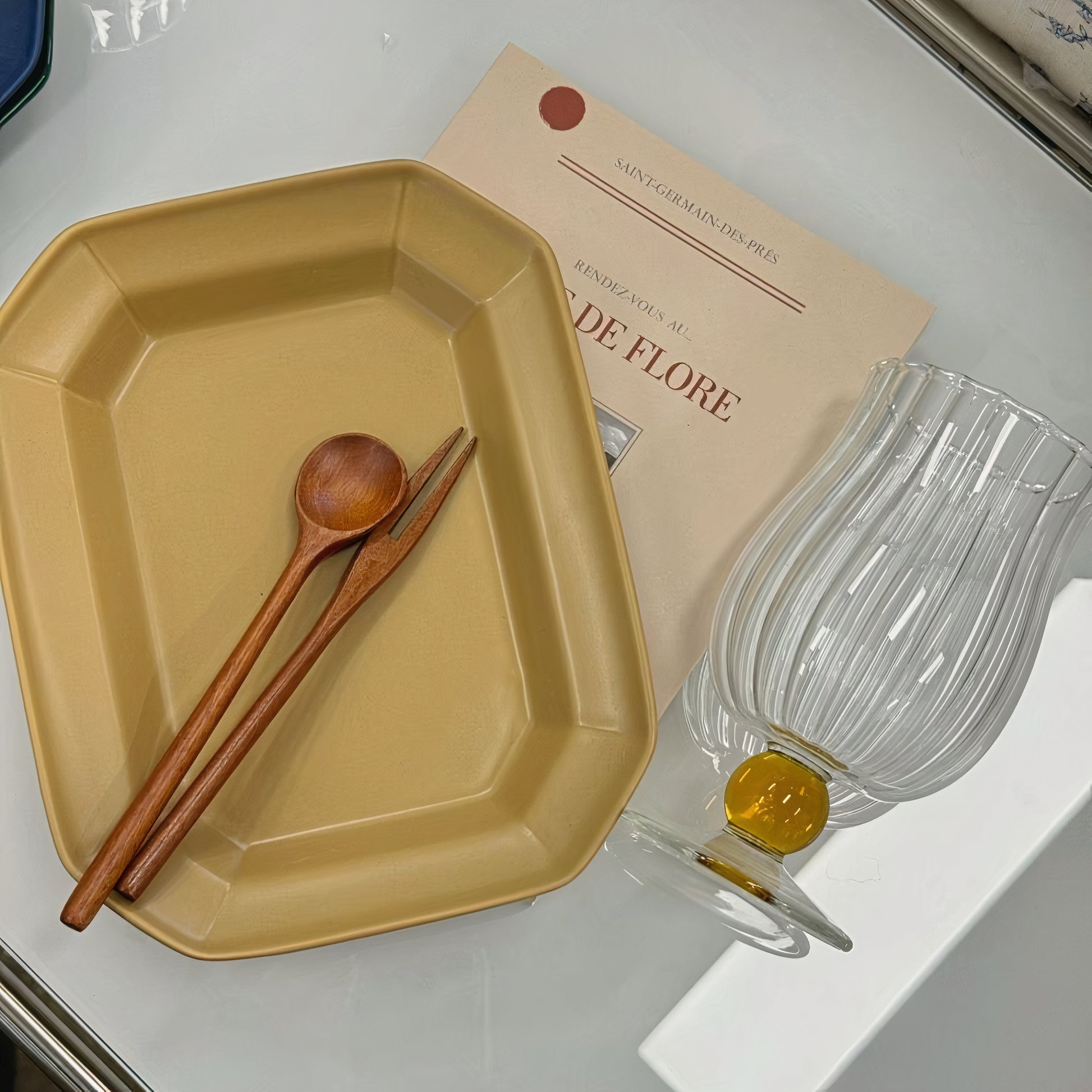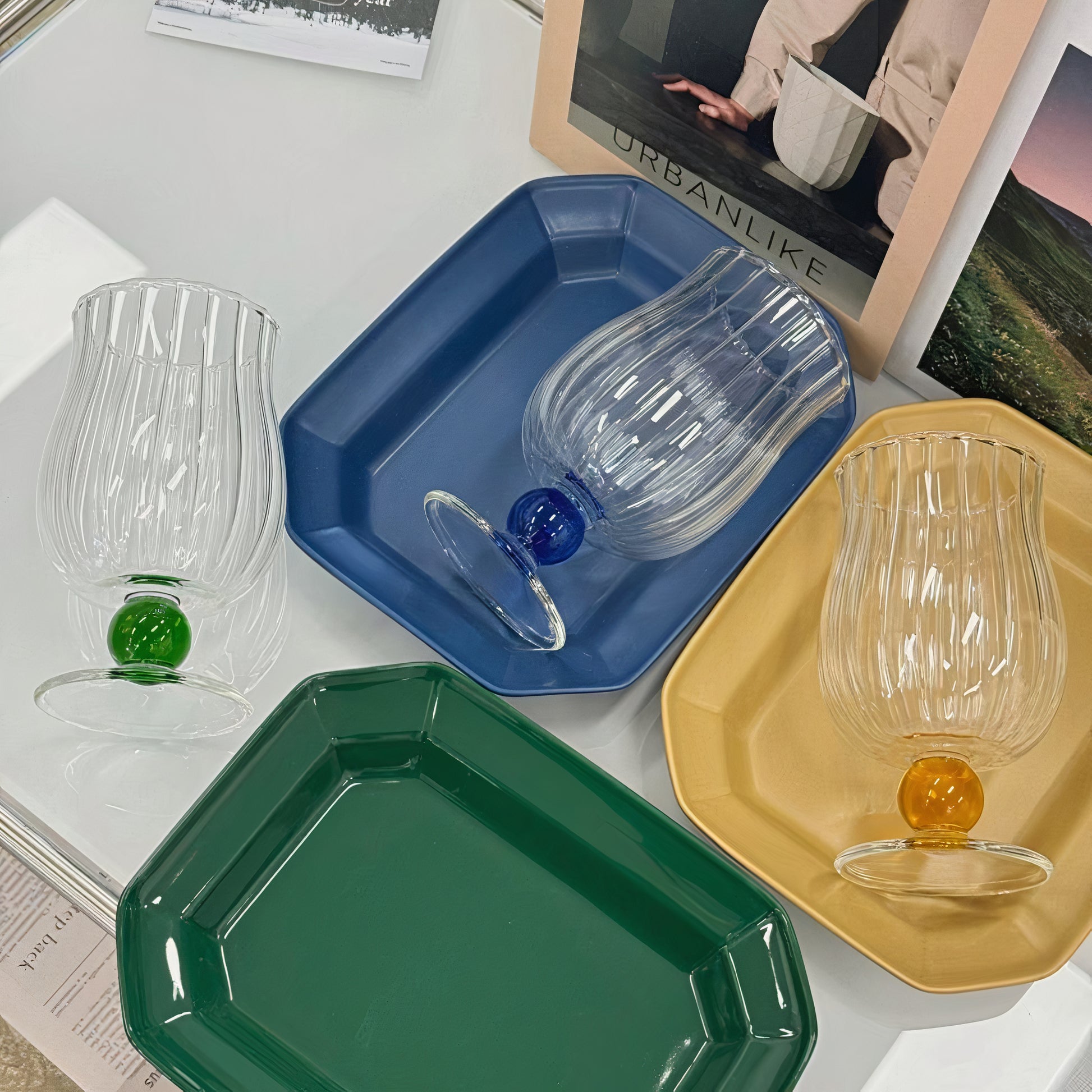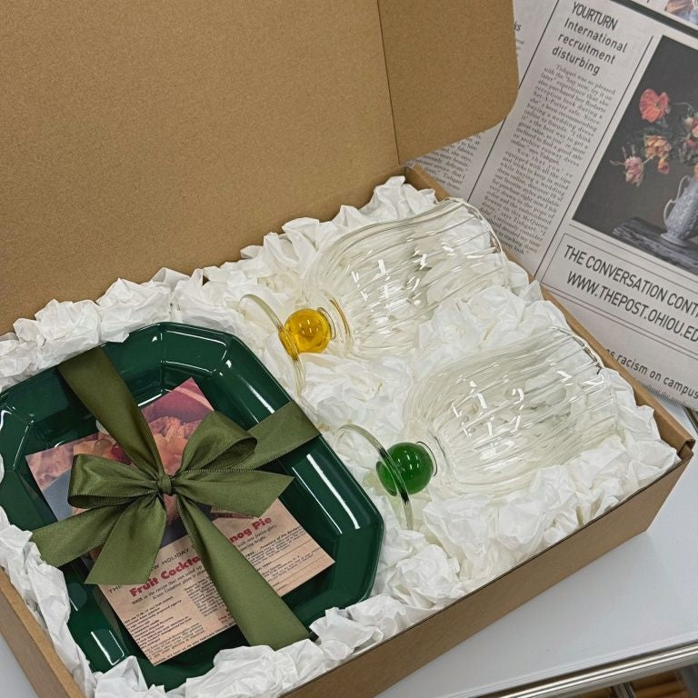 This set includes a handcrafted tulip-shaped wine glass and a vintage-inspired ceramic plate—perfect for hosting, gifting, or elevating your everyday table setting. The tulip glass is shaped for a comfortable grip and smooth sip, while the square plate features a soft, organic silhouette available in glossy green or matte blue and peanut butter tones.