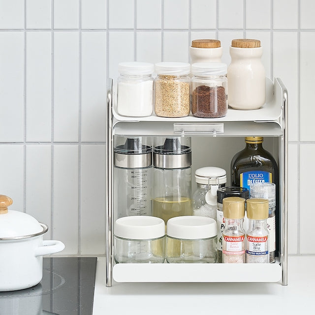 Kitchen countertops, bathroom storage, bedside tables, or small-space organization